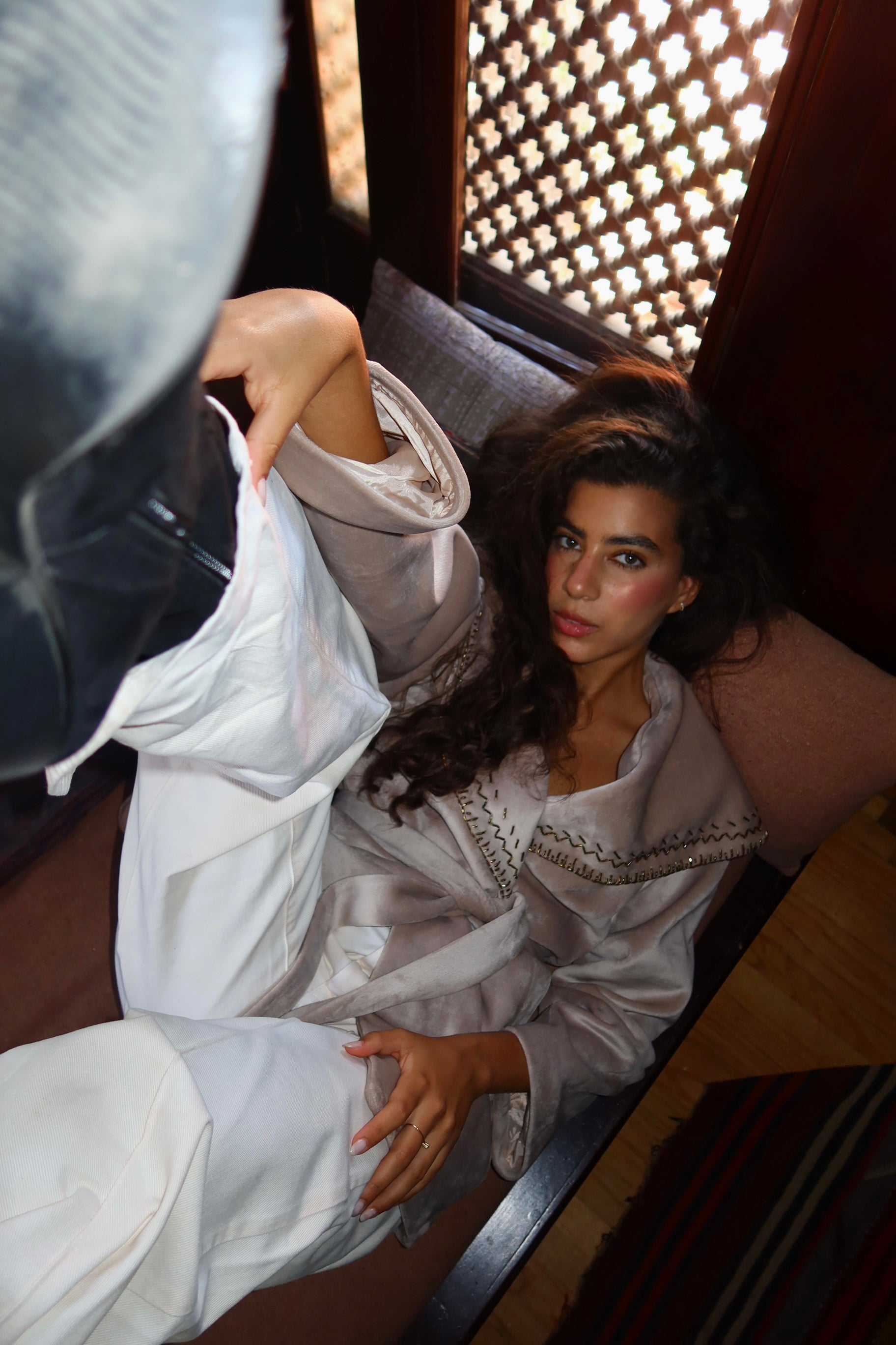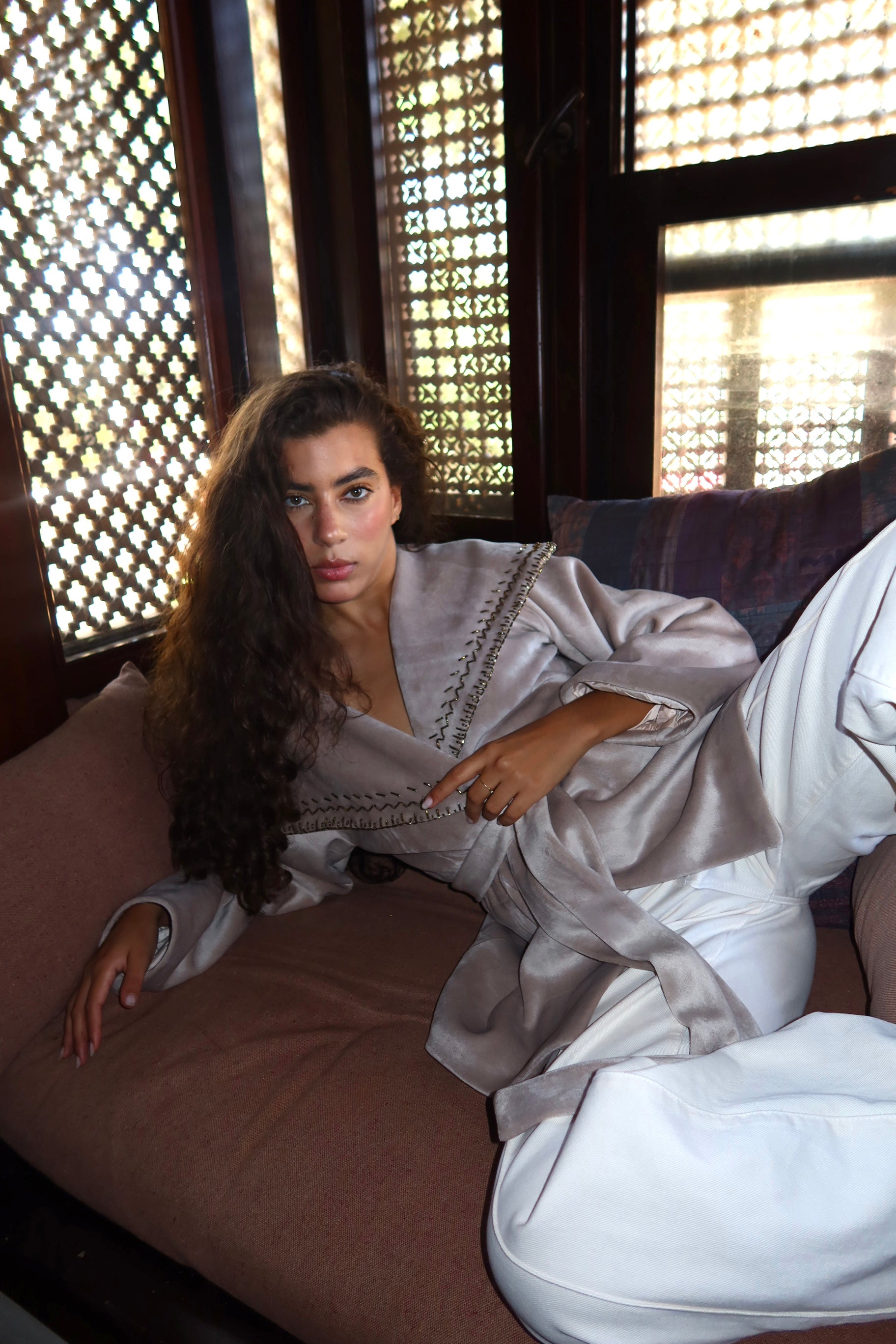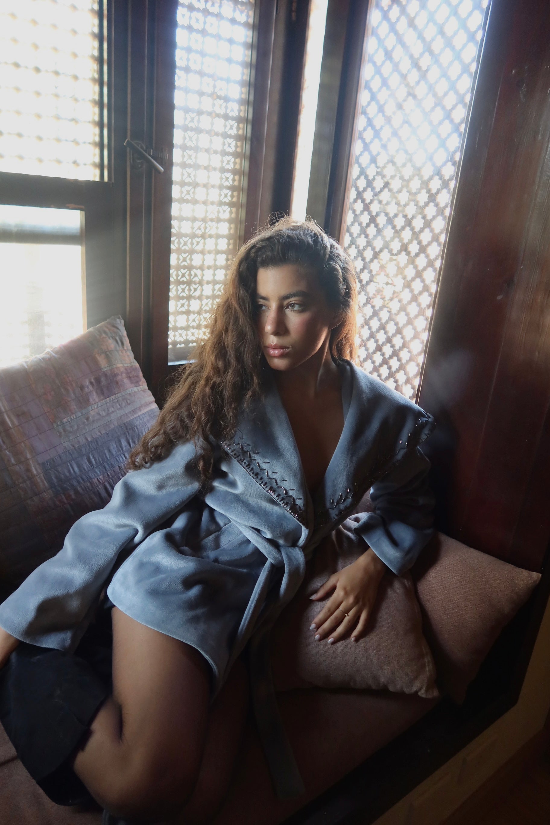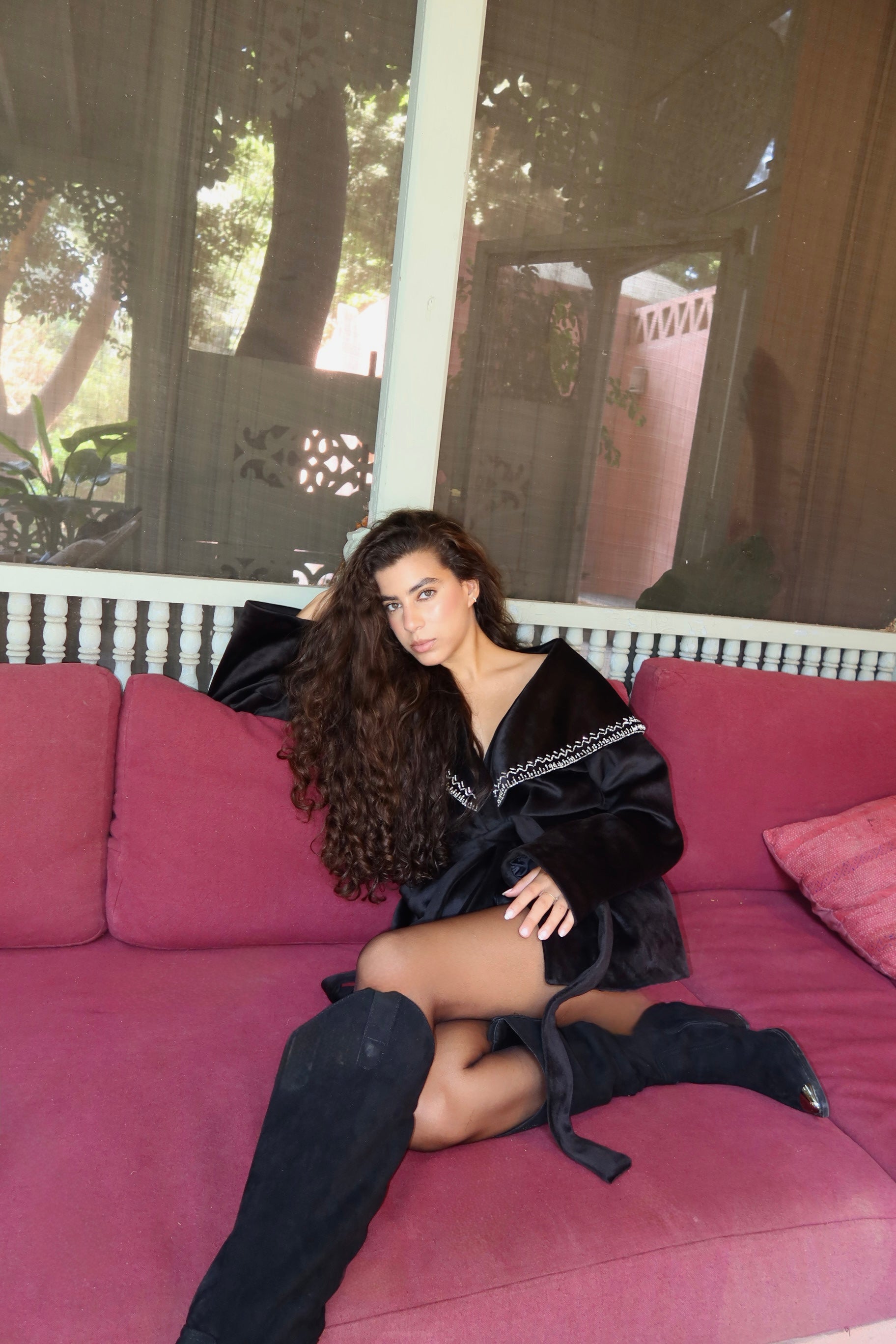 Soft velvet with delicate handmade embroidery on the collar timeless, elegant, and made to stand out.